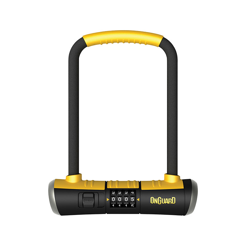 OnGuard BullDog Series U-Lock - 4.5 x 9" Combination Black/Yellow Includes bracket. OnGuard BullDog series u-locks feature X2P Double Bolt lock mechanisms and strong 13mm (0.51”) hardened steel shackles for a full circle of protection.